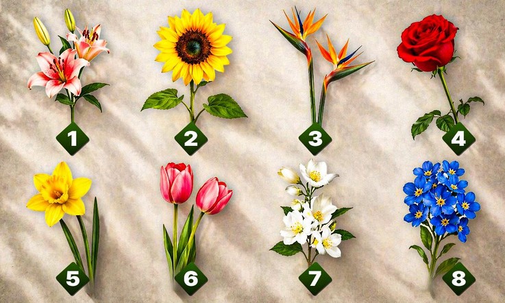 Psichologai mano, kad mūsų pasirinkimai, susiję su gėlėmis, gali daug pasakyti apie vidines savybes. Augalas, kurį pasirenkame, gali būti susijęs su tam tikrais asmenybės bruožais. Pasirinkite vieną gėlę iš aštuonių ir sužinokite, kaip elgiatės santykiuose bei koks partneris jums būtų idealus.