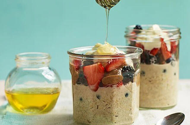 Kitą dieną praskieskite košę vandeniu (ar pienu), jei reikia. Patiekite su jogurtu, uogomis, medumi ir riešutų sviestu.