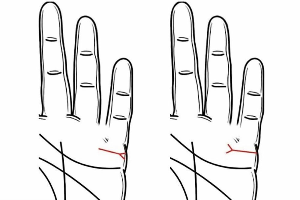 Kartais juos sunku pastebėti iš karto. Kad linijos taptų ryškesnės, pakanka šiek tiek sulenkti mažąjį pirštą – taip delno oda įsitemps ir linijos išryškės.