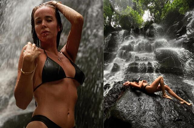 Šįkart ji nusimetė drabužius ir šalia Kanto Lampo krioklio pozavo vilkėdama juodą maudymosi kostiumėlį.