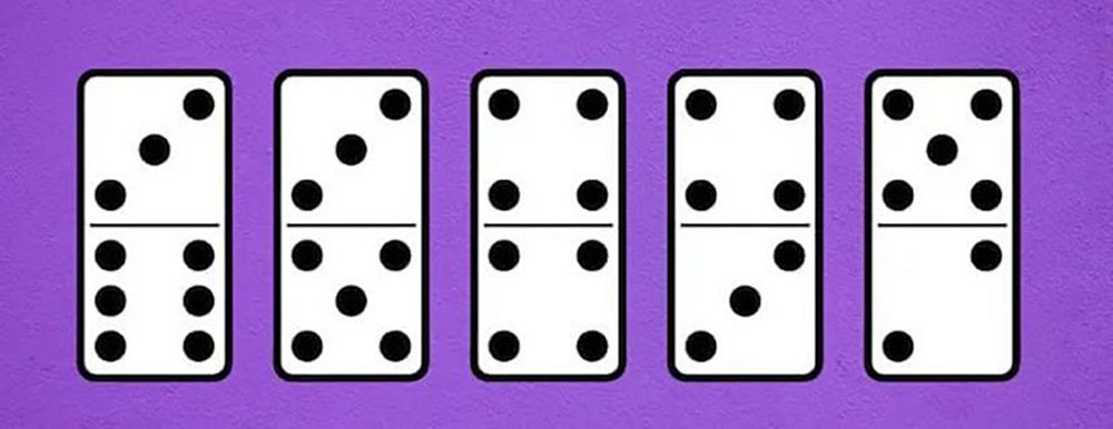 Jei tai pastebėjote – sveikiname, jūs radote pagrindinį gudrybės elementą! Tai reiškia, kad kitas domino kauliukas turi turėti skaičių, kuris yra didesnis nei 5 (viršutinėje dalyje) ir skaičių, kuris yra mažesnis nei 2 (apatinėje dalyje). Sėkmės!