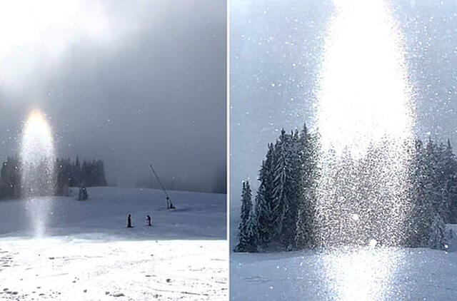 Vaizdo įraše matoma, kaip ovalo formos šviesos spindulys mirguliuoja snieguotame kraštovaizdyje, o pro šalį važiuojantys slidininkai, regis, nežino apie keistą gamtos reiškinį visai šalia jų.