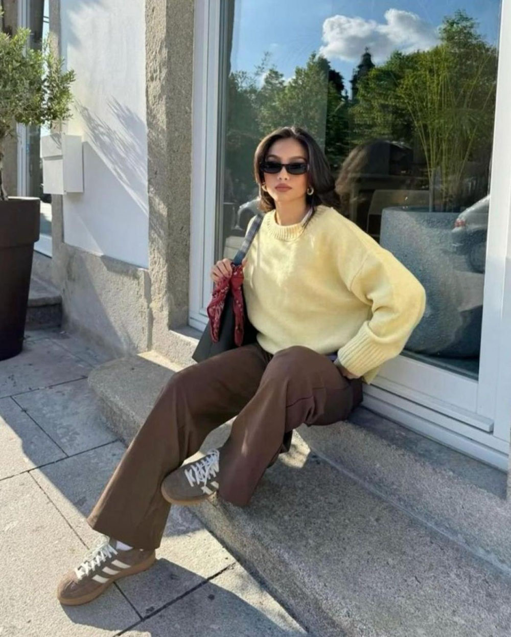 Tokie stilingi deriniai atrodo šiuolaikiškai ir pabrėžia rudos spalvos šilumą. Tinkami spalvų deriniai leidžia net ir baziniams drabužiams suskambėti naujai.