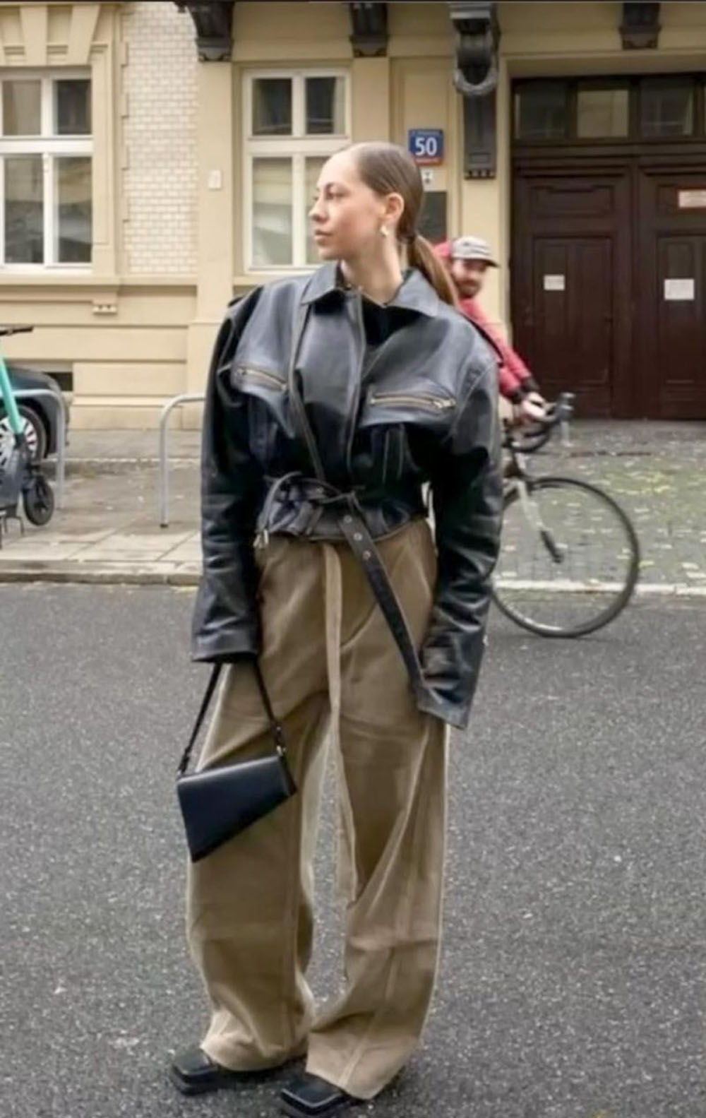 „Tai labai gražus X formos siluetas: platūs pečiai ir ryškus juosmuo“, – aiškina Anastasija Krivickaja. Be to, šią moterišką odinę striukę labai lengva derinti – ji puikiai tinka tiek prie džinsų, tiek prie klasikinių kelnių ar sijonų.