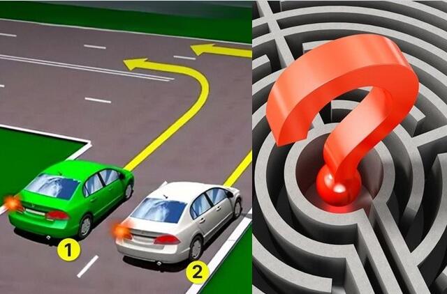 Šis testas sukėlė diskusijas internete. Reikia parinkti vairuotoją, kuris iš šalutinio kelio posūkį atlieka pagal taisykles.
