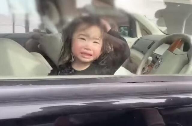 Automobilis užrakintas ir ji negali iš jo išlipti!".