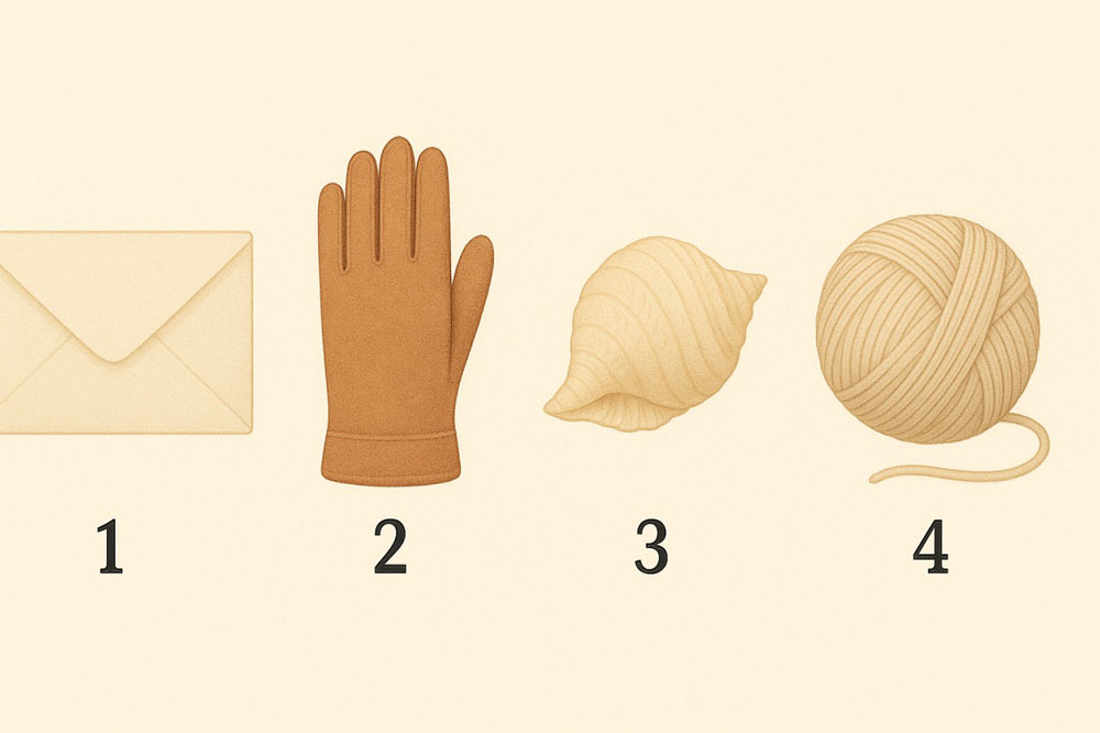 Jums tereikia pažvelgti į keturis daiktus: laišką, pirštinę, kriauklę ir siūlų kamuolį. Negalvokite per ilgai, neieškokite paslėptos prasmės. Tiesiog sąžiningai užfiksuokite, prie kurio objekto jūsų žvilgsnis sustojo pirmosiomis sekundėmis.
