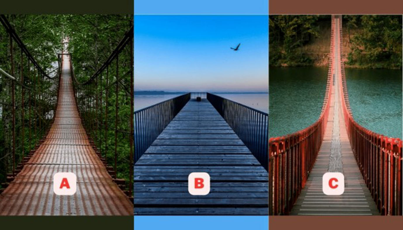 Pažvelkite į paveikslėlį su trimis sunumeruotais tiltais ir greitai pasirinkite mėgstamiausią tiltą.
