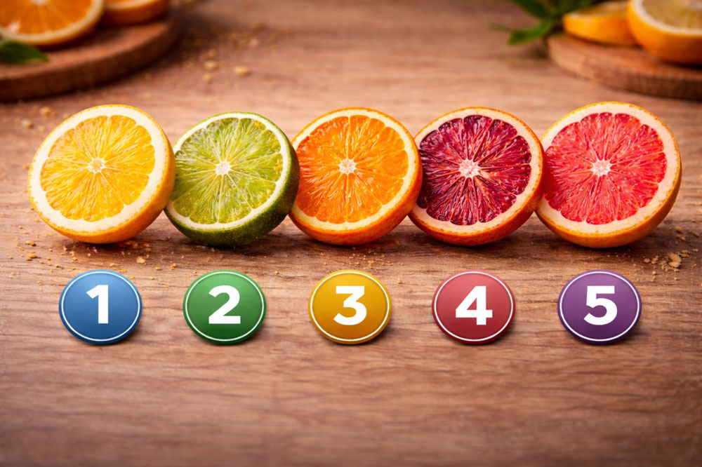 Pažvelkite į penkis citrusus ir pasirinkite tą, kuris jus patraukė pirmas. Ne „teisingą“, ne mėgstamiausią gyvenime, o tą, kurį pasirinktumėte dabar be jokių paaiškinimų.