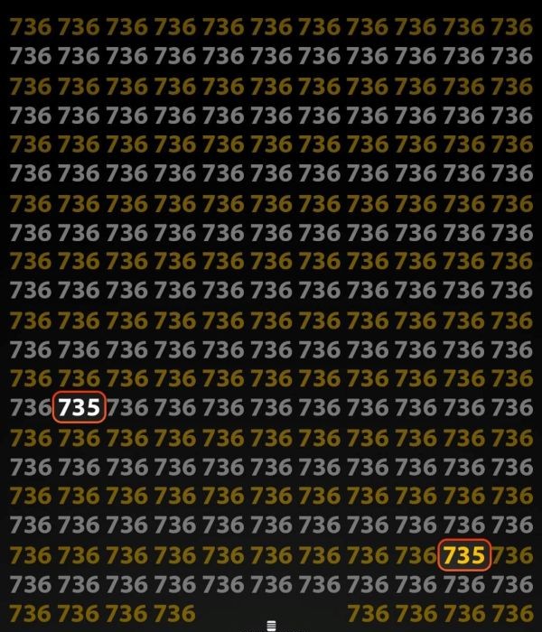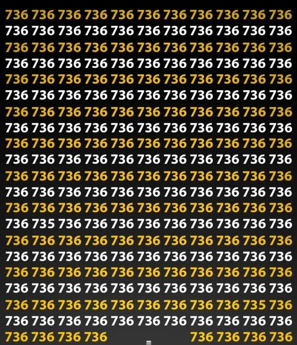 Taigi, šiandien siūlome vieną tokį galvosūkį: paveikslėlyje žemiau pamatysite daug skaičių 736, bet tarp jų paslėpti du skaičiai 735.