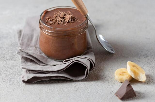 Reikės: 150 ml graikiško jogurto, 100 g juodojo šokolado, šiek tiek kakavos miltelių