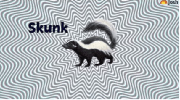 Šio banguoto rašto centre paslėpta skunkas (šešką primenantis kailinis žvėrelis su baltomis juostomis šonuose).