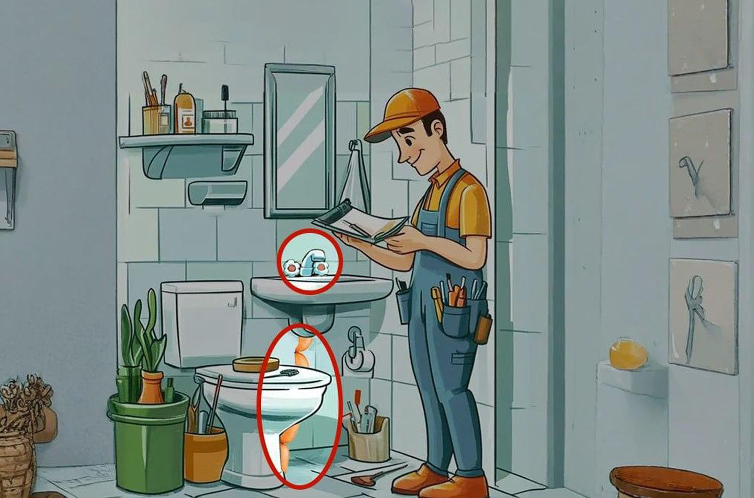Šiame galvosūkyje jums reikia rasti dvi klaidas paveikslėlyje. Priešais tave yra santechniko nuotrauka vonios kambaryje. Kambaryje yra įvairių įrankių ir priedų, tačiau kai kurie daiktai pavaizduoti neteisingai arba jų apskritai turėtų trūkti.