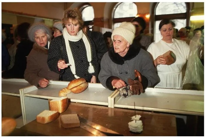 Dauguma populiariausių prekių, tokių kaip duona, sviestas, pienas, dešra, išsiskirstydavo per kelias prekybos valandas, o žmonės stovėdavo ilgose eilėse.