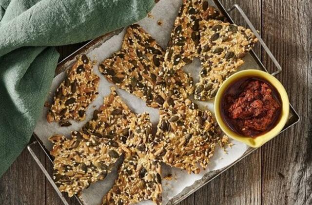 Tešlą plonai paskleiskite ant skardos. Kepkite orkaitės viduryje apie 1–1,5 valandos.