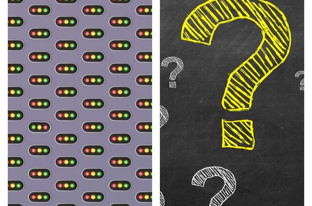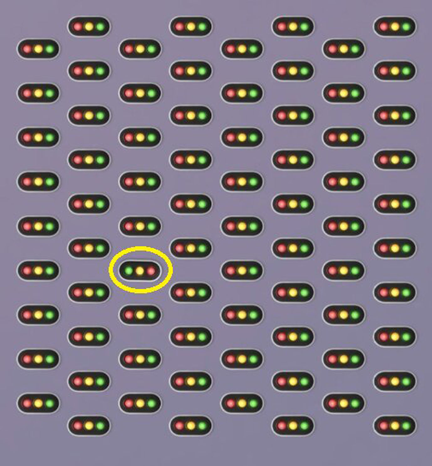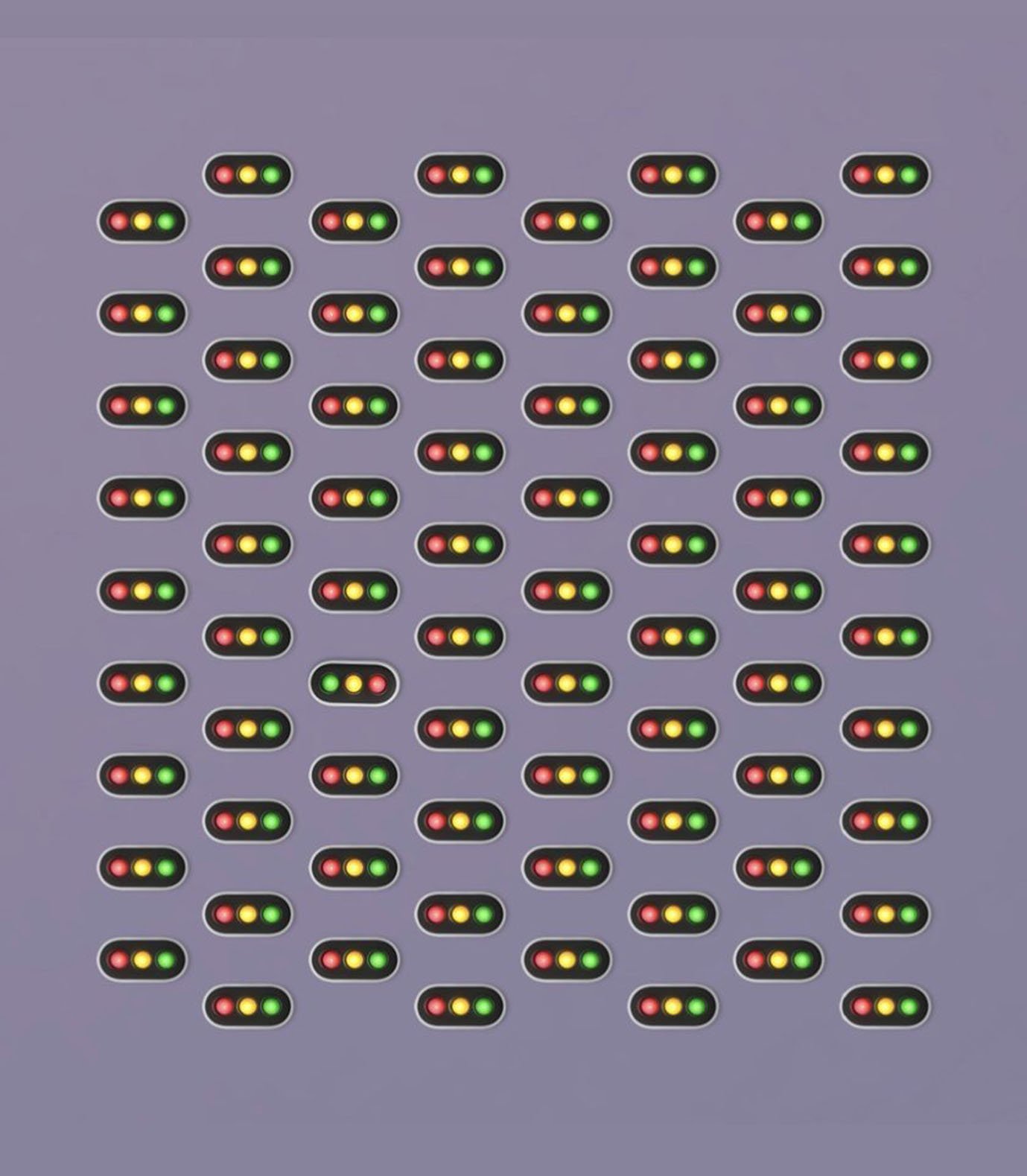 Taigi, atidžiai įsižiūrėkite į paveikslėlį. Pamatysite daug iš pažiūros vienodų šviesoforų, tačiau iš tikrųjų vienas iš jų skiriasi nuo visų.