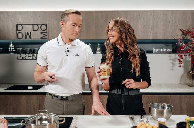 „Virtuvėje aš – individualistė. Man patinka, kai viskas vyksta pagal mano taisykles ir niekas nesimaišo po kojomis. Nežinau, kaip tiek laiko tave toleruoju, Laurynai“, – kolegai besijuokdama tars V. Poderytė-Bernatavičė.