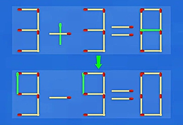 Degtukus galite pavaizduoti ir pirmoje, ir antroje lygties dalyje.