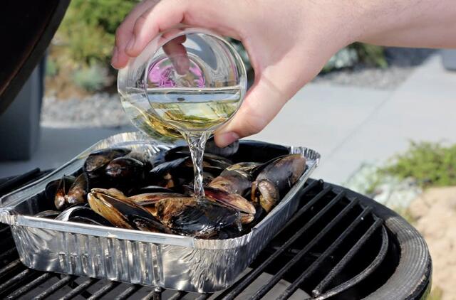 Nuvalykite midijų kriaukles ir nuplaukite jas po tekančiu vandeniu, o tuomet pasiruoškite grilį ir indą midijoms virti. Dažniausiai naudojamas platus ir gilus puodas arba aliuminis dėklas“, – patarimais dalijasi V. Nadzeika.