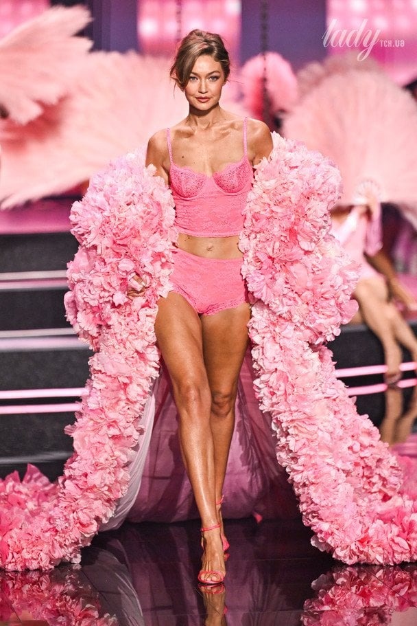 Šiais metais Gigi vėl nustebino – ant podiumo ji pasirodė su baltais sparnais, primenančiais dygsniuotą antklodę.