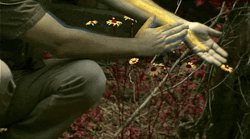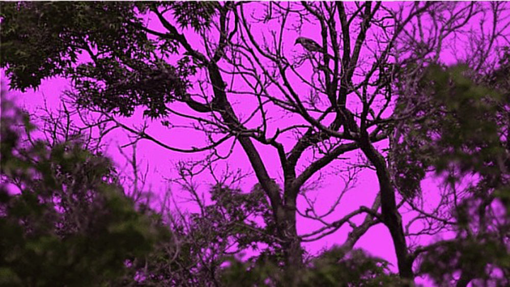 Viename iš kameros kadrų matomi strazdai giesmininkai ant medžio. Mums tai tiesiog pilki paukšteliai melsvo dangaus fone. Jų gentainiams tai švytinčiomis baltomis plunksnomis būtybės sodraus violetinio fono erdvėje. Toks „apšvietimas“ padeda jiems bendrauti ir matyti vienas kitą tankiose šakose.