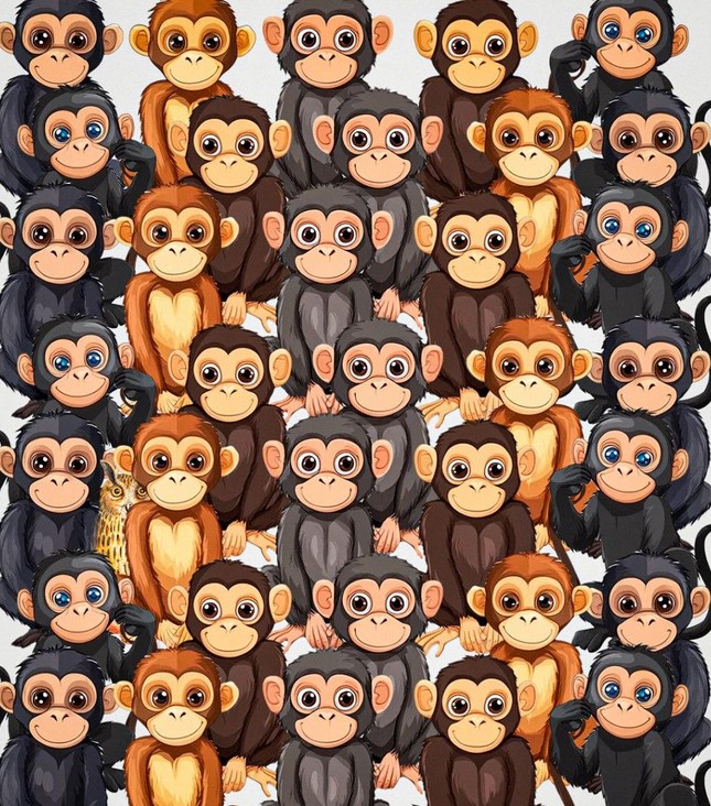 Toliau matysite beždžionių koliažą. Kažkur tarp jų paslėpėme pelėdą.