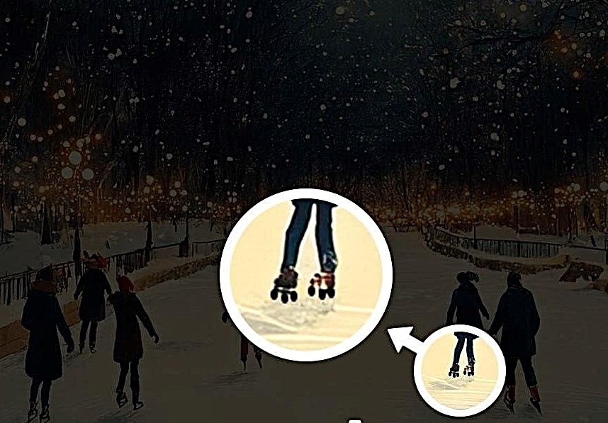 Pasinaudokite užuomina: ieškokite netikslumų čiuožyklos lankytojų išvaizdoje.