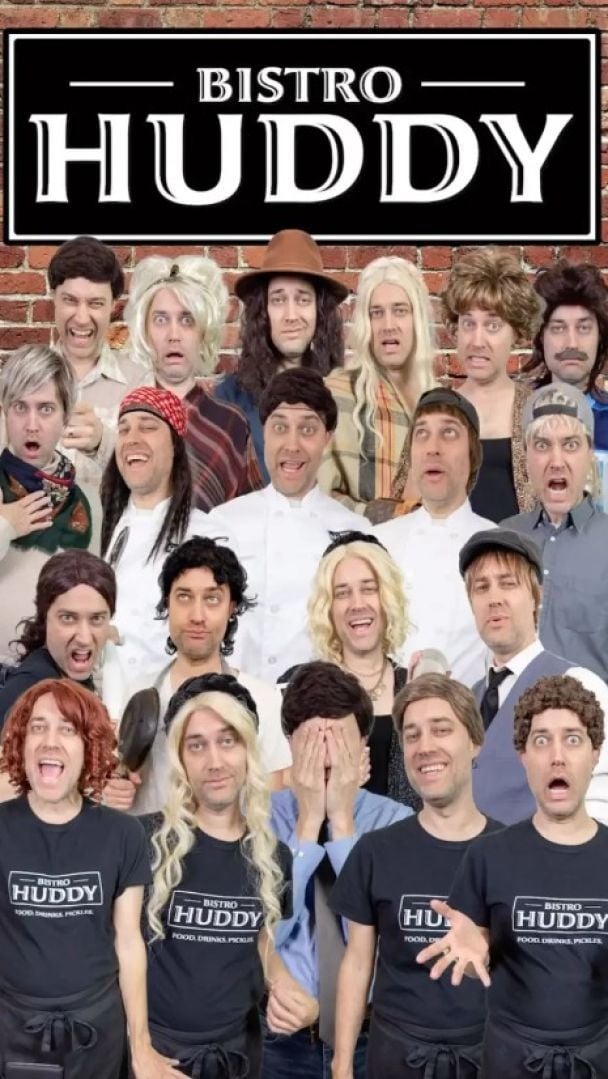 Sūnaus Hadsono garbei pavadintame restorane „Bistro Huddy“ remiamasi 22 metų D. Talberto patirtimi, kurią jis panaudoja virusiniuose skečuose, kai užsidėjęs vieną iš daugybės perukų vaidina kelis personažus - bendradarbius, klientus ir kitus.
