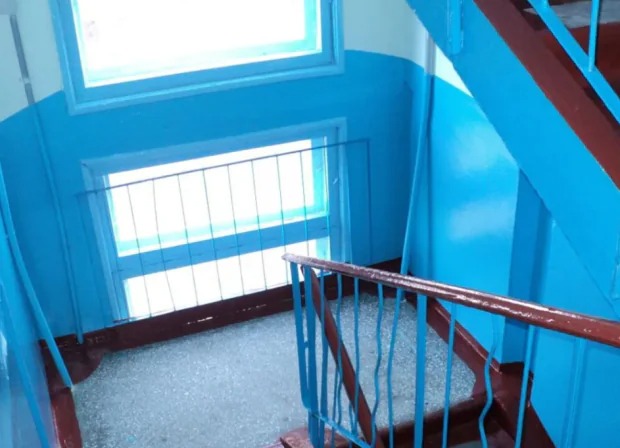 Paprastai sovietiniai namų laiptinės buvo dviejų spalvų: viršuje – baltos, apačioje – mėlynos arba žalios.