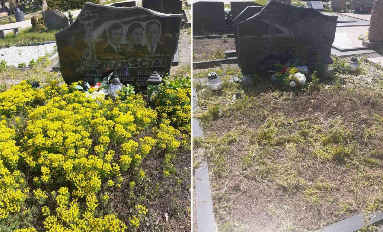 „Kažkodėl užkliuvo tik mano, o kaimynystėje palikta taip, kaip buvo. Kapinių prižiūrėtojas puolė aiškinti, esą darbuotojai nupjovė piktžoles, bet tokių gėlių, kaip ant mūsų kapavietės, už jos ribų nebuvo pridygę. Kita vertus - nupjauti tai nupjovė, bet viską, ką nupjovė, taip ir paliko ant kapo gulėti“, - piktinosi moteris.