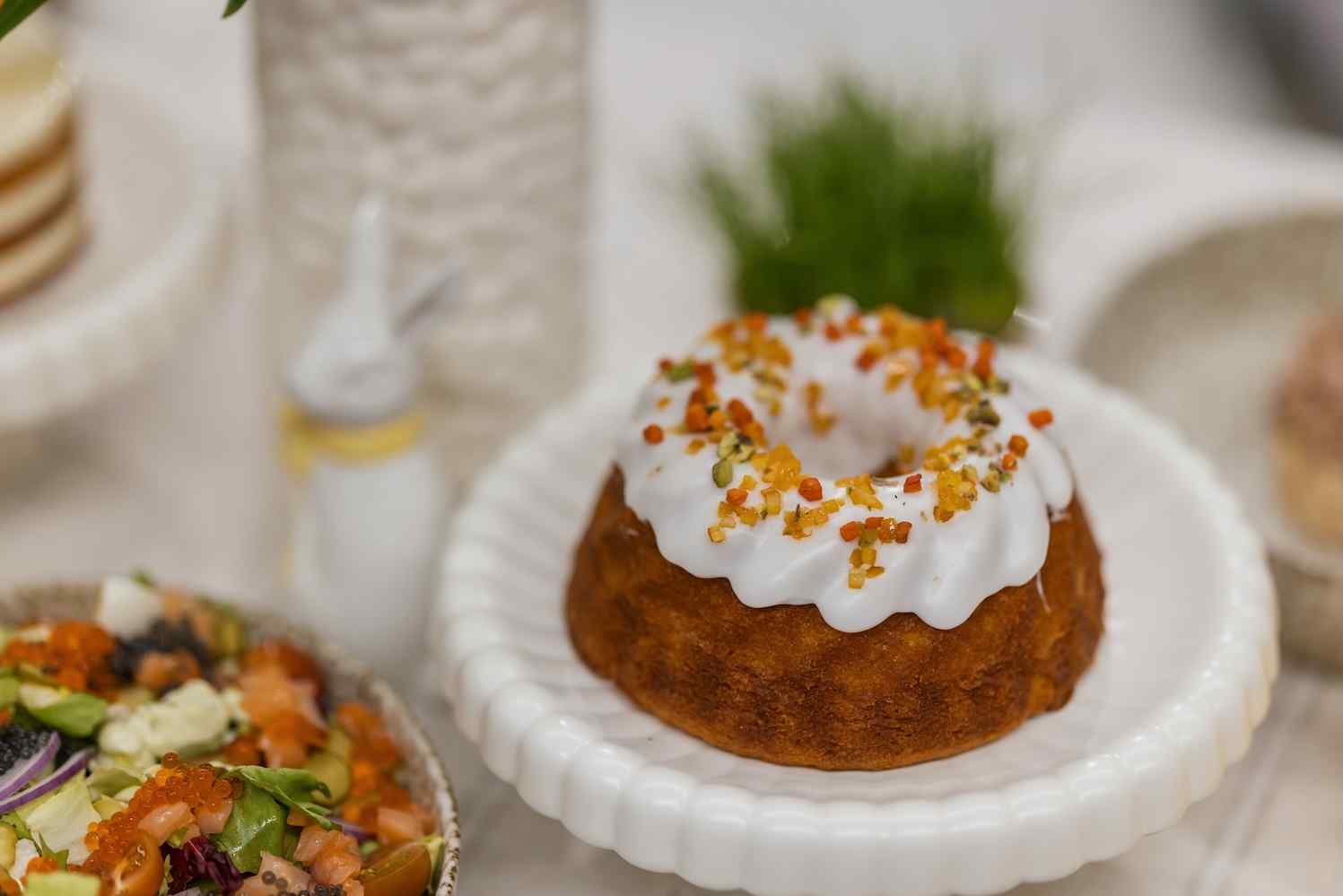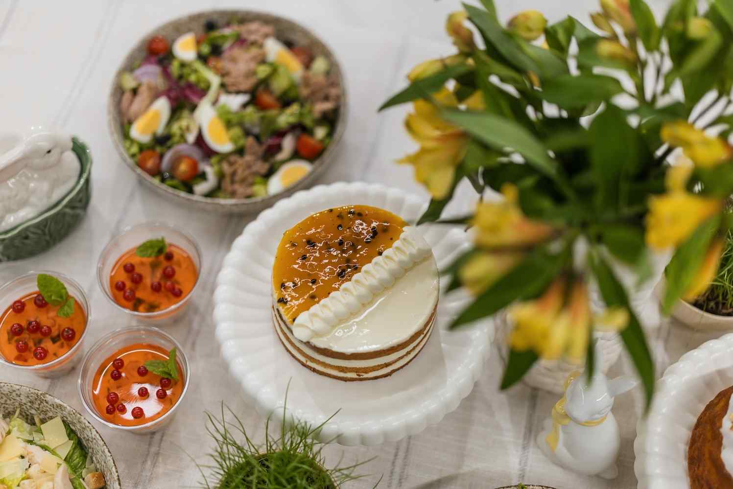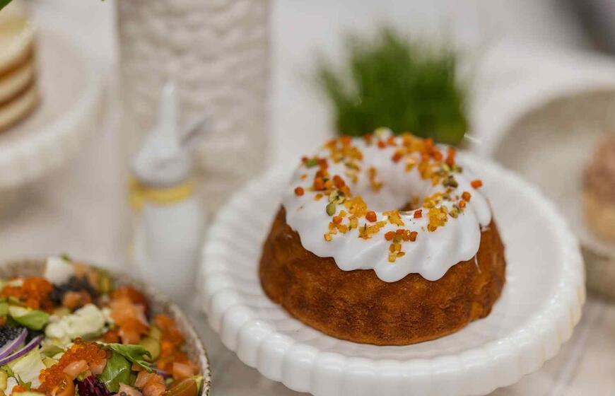 Konditerijos „Meistro kokybės“ asortimente pagrindinis šventės akcentas – velykinis keksas su gaiviu apelsinų įdaru, dekoruotas liofilizuotomis morkomis, apelsinų cukatomis ir pistacijomis. Šventiniam stalui puikiai tiks ir „Maximos“ konditerijos meistrų paruoštos pavasario naujienos – pasiflorų tortas su sūria karamele ir želė desertas, kurie savo gaivumu ir spalvomis jį puikiai papildo.