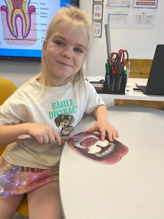 „Kalbant apie mitybą, kepame sveikuoliškus vaflius be cukraus, gaminame įvairių žmogaus organų sistemų modelius, ragaujame natūralius vitamino C šaltinius. Reguliariai einame į žygius šiaurietiškomis lazdomis, mokomės, kaip tinkamai tvarstyti žaizdas ar suteikti pirmąją pagalbą užspringus. Taip pat daug dėmesio skiriame ir kalbame ir apie meditacijos naudą psichologinei sveikatai.