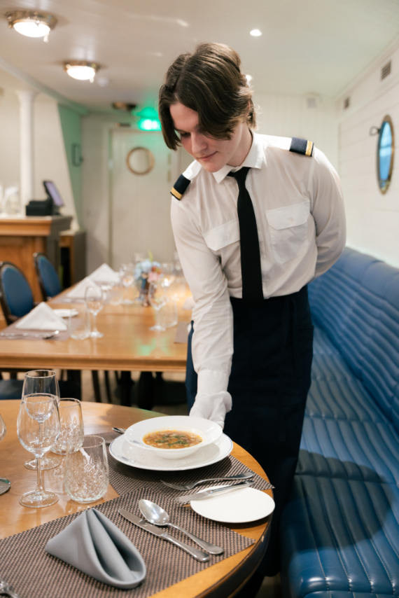 Pameistriai restorane ne tik stebi – jie dirba. Jiems patikimos realios atsakomybės, jie vertinami pagal aiškius kriterijus, dalyvauja miesto renginiuose, kultūriniuose vakaruose ir neterminuotai priimami į darbą.