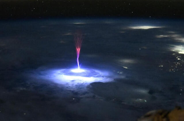 Kaip medūza su čiuptuvais: astronautė iš kosmoso parodė milžinišką „sprite" virš Žemės