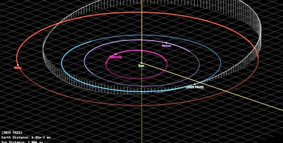 2089 m. 2025 FA22 nepriartės prie Žemės pernelyg arti. NASA Reaktyvinės judėjimo laboratorijos duomenys rodo, kad kosminis akmuo priartės prie Žemės 6 mln. km, o tai septynis kartus toliau nei ketvirtadienį.