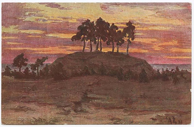 „Atvykęs į tą miestelį (Palangą - aut. past.) išsirengiau vaikštynių nuo kalno vietinių gyventojų “Holenderski kapelusz„ (liet. Olando kepurė - aut. past.) vadinamo pradedant. Iš tikrųjų žiūrint į jį iš tolo, jis atrodo kaip skrybėlė (stosowany kapelisz). Marininkai pažinsta jį gerai, nes iš Jūrių į kelias mylias - kaip aš pats patyriau - o galbūt keliolika jau tą kalną galima pažinti“, - pasakojama ir priduriama, jog jūreiviai šią kopą vertinga laikė „kaipo rodyklę laivams vesti“.