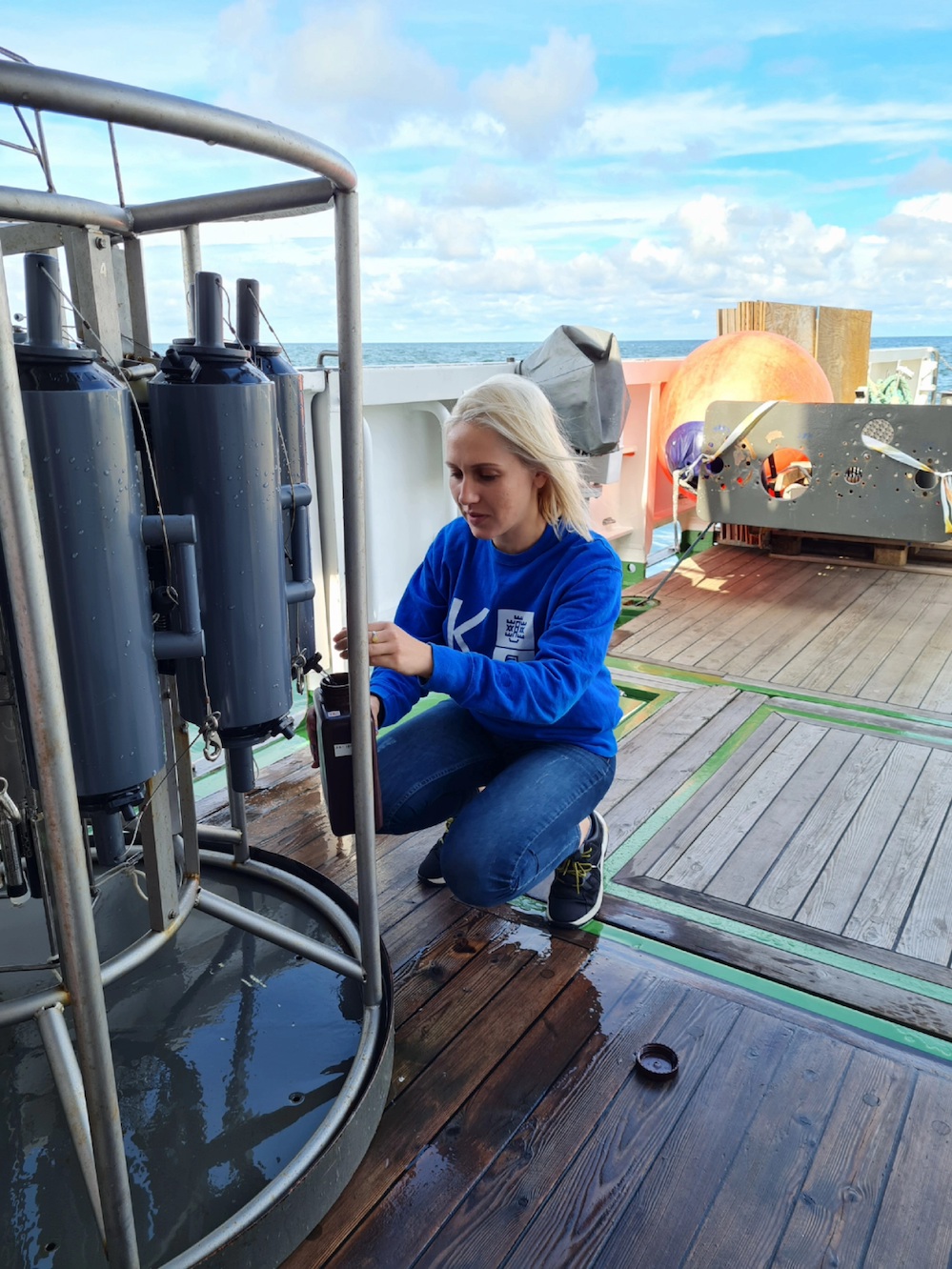 MĖGINIAI. Vandens mėginių ėmimas Baltijos jūroje. Ekspedicija KU mokslinių tyrimų laivu „Mintis“.