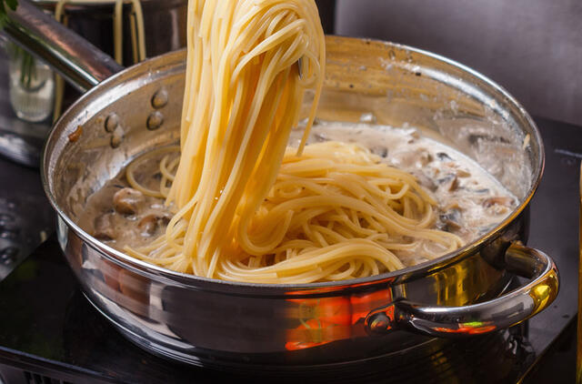 Kad makaronai su kečupu būtų tirštesni, jų plauti nereikia.