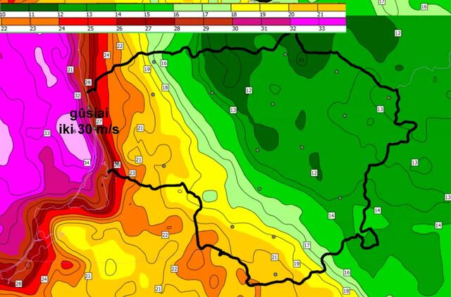 Svarbiausias bus vėjas. Ateinančią naktį jis rimtis, nors kai kur tikėtini vėjo gūsiai 15-18 m/s, bet šeštadienio dieną, artėjant naujam ciklonui vėjas pradės stiprėti ir iki vakaro didesnėje šalies dalyje laukiami gūsiai 15-20 m/s, o pajūryje bus dar stipresnis vėjas“, – sako vyr. specialistas.