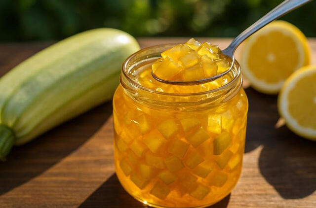 Cukinija – kuklus produktas, bet šiame recepte jis atsiskleidžia netikėtai. Po ilgo virimo su cukrumi ir citrina gabaliukai tampa minkšti ir skaidrūs, virsta gintaro spalvos kubeliais, o citrusiniai vaisiai suteikia desertui lengvą rūgštelę ir šviežumo aromatą.