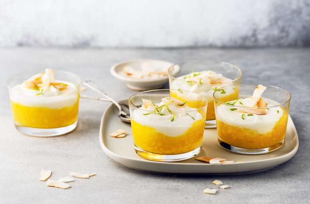 Lengvas ir gaivus pudingo su mangais desertas puikiai tiks šiek tiek pasaldinti gomurį po sočios vakarienės.