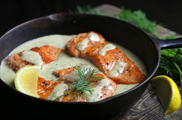 Kaip paruošti lašišą su špinatų-grietinėlės padažu