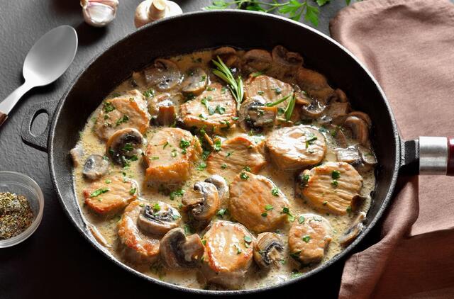 Keptuvėje ruošta kiaulienos mentė grybų padaže