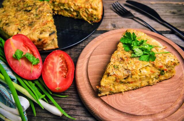 Pagrindinis patiekalas, garnyras ir užkandis viename: keptuvėje išsikepkite ypač skanų pikantišką pyragą, tekainuojantį kelis eurus