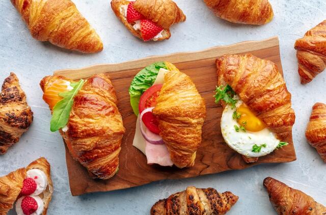 „Kruasanai puikiai tinka kepiniams ar sumuštiniams, jie gali būti net torto pagrindas. Iš jų galima labai greitai pagaminti skanėstus, nes pagrindinis patiekalo elementas – kruasanas – jau paruoštas.