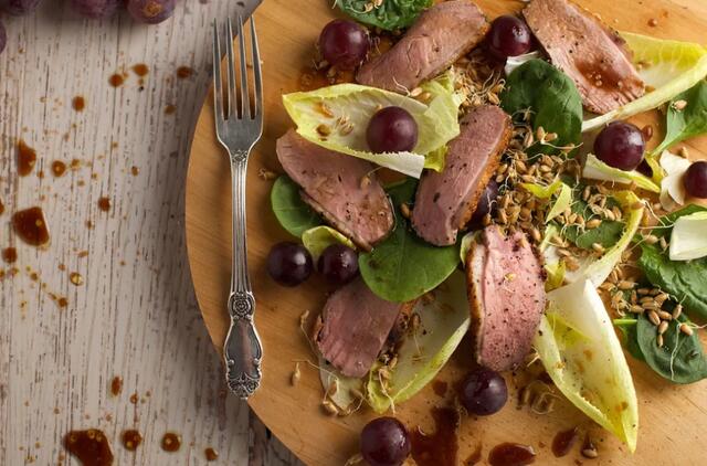 „Rimi“ kulinarijos ekspertai kviečia paragauti neįprasto vynuogių ir antienos dueto bei namuose pasigaminti salotų su šiais ingredientais.