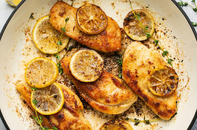 Šis paprastas ir lengvai pagaminamas vienos keptuvės citrininės-sviestinės vištienos receptas yra skanus savaitės vakaro patiekalas, paruošiamas greičiau nei per 15 minučių.