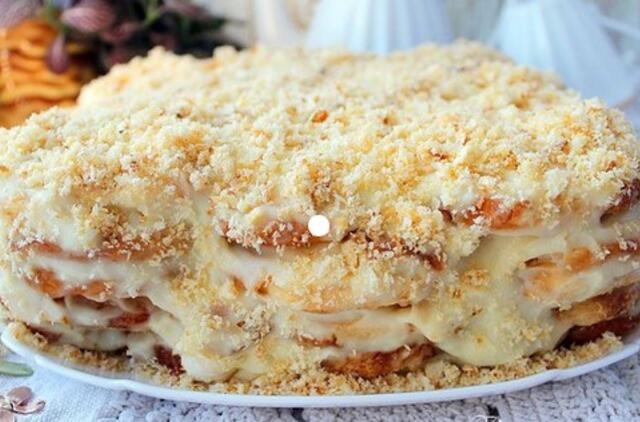 - Dabar galima sudėlioti tortą.