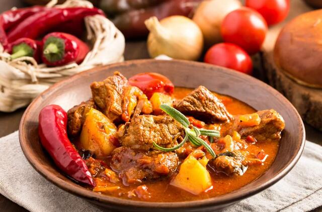 Aromatingas guliašas su porais ir morkomis