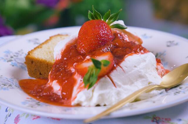 O desertui – lengvai pagaminamas Madeiros pyragas su braškių uogiene ir grietinės kremu“, – visus išalkusius ir gaminti mėgstančius žmones vilioja Kotryna.